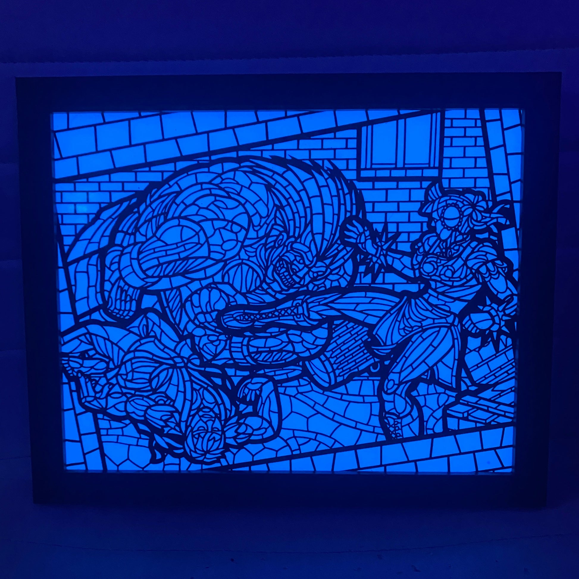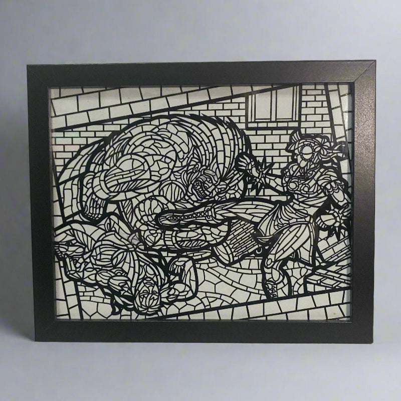 Get ready to level up your decor with our Street Fighter 2 Shadow Box! Featuring iconic characters from the beloved video game, Street Fighter 2, this shadow box will add a touch of nostalgia to any room. Plus, the glow in the dark feature adds an extra element of fun!